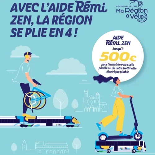 La Région Centre Val de Loire s’est engagée à développer l’intermodalité vélo avec le réseau Rémi et aider à l’acquisition de vélos et trottinettes sur le territoire via deux dispositifs :